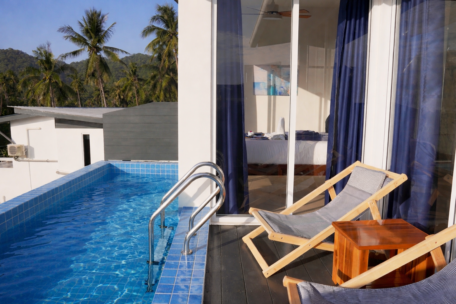 Discover your perfect escape at one of Aura’s Private Pool Villas, a serene 1-bedroom retreat in beautiful Thailand. Each villa features a private pool, air conditioning, Wi-Fi and a spacious living room with floor-to-ceiling windows. Enjoy luxurious modern interiors, relax in comfort, and soak up breathtaking sea views from your outdoor deck and private pool. Whether you’re here to recharge or explore, these villas offer the ultimate tropical getaway.